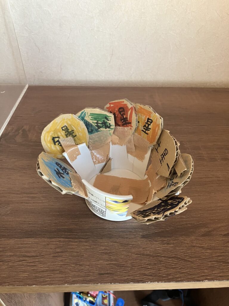 家にある物で、なんとかならないか考えて、こんな感じになりました。