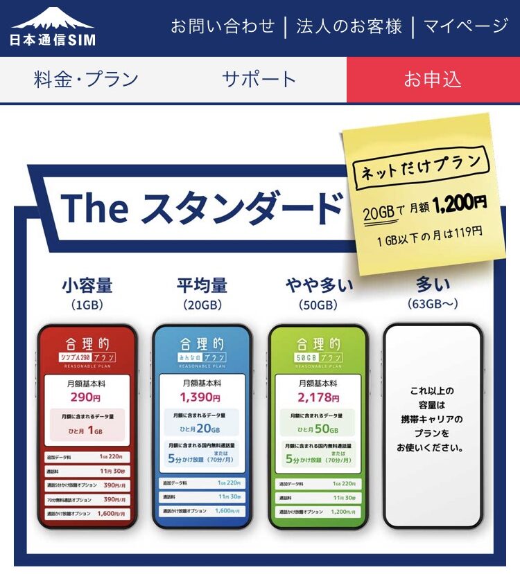 1番のおすすめは、この、日本通信SIM